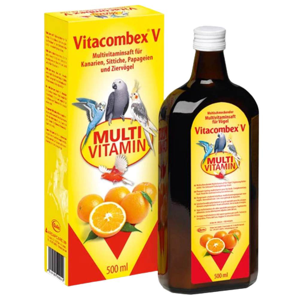 المكمل الغذائي Combex V وهو الملتي فيتامين ولا غنى عنه حيث أشتهرت به الشركه كونه مكمل غذائي شامل بمكوناته لجسم الطير ويسد النقوصات التي يفقدها الطير من جهد وخلافه ويستخدم الملتي فيتامين لعدة أغراض من أهمها التغيير الجوي علي الطيور لإحتوائه علي فيتامين سي وكذلك تردي الخصوبه في وقت الإنتاج وكذلك لمرض الكساح لدي الطيور وهو لين العظام ويعتبر مهدئ للجسم ويعطي الطير أريحيه وإنطباء عدم التوتر في القفص .وله قابليه للطيور بفضل نكهته الطيبه ويستخدم كذلك في وقت تبديل الريش حيث تعطي مكوناته تجديد ونظاره ولمعان وقوه للريش .يستخدم يوميا في وقت الطرح ويقدم كذالك في وقت التزاوج والإنتاج و في موسم الاسترخاء أو عندما تأتي طيور من الخارج